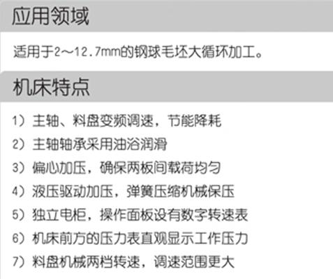 本機床是軸承廠和專業鋼球制造廠加工鋼球用的專用機床,適用于2~12.7mm的鋼球毛坯加工。