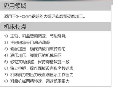 本機床系加工鋼球的專用機床,適用于直徑3~25mm鋼球的軟磨和硬磨加工。
